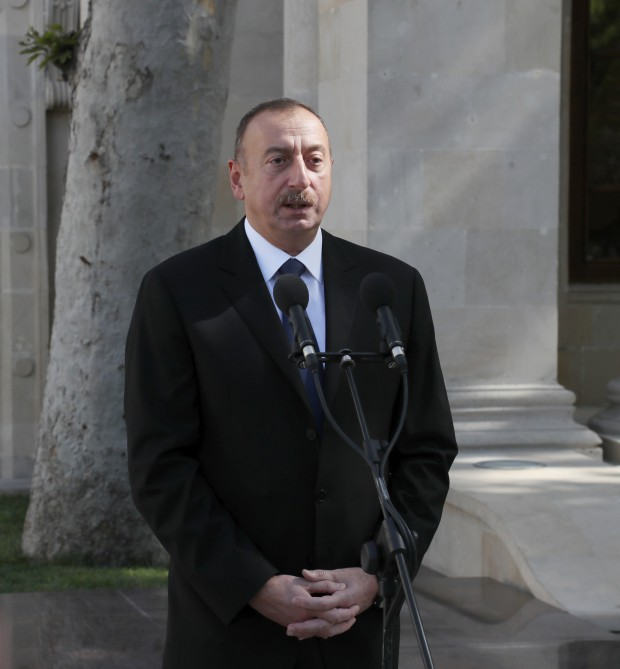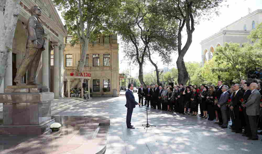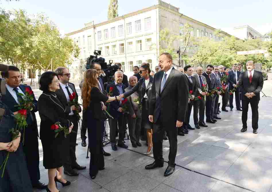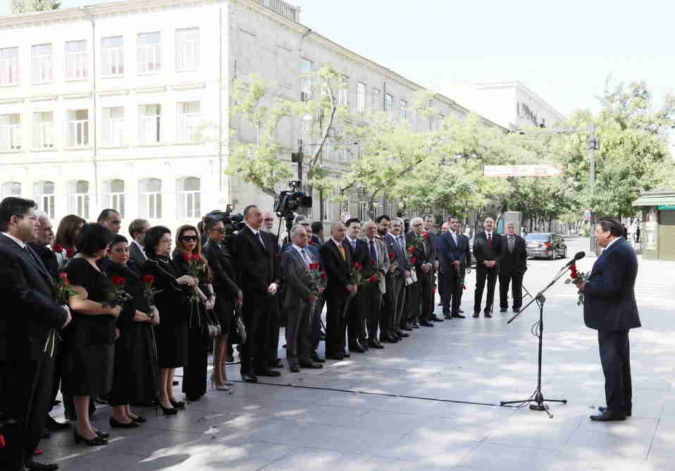 Dövlətimizin başçısı abidənin önünə gül qoydu və çıxış etdi.