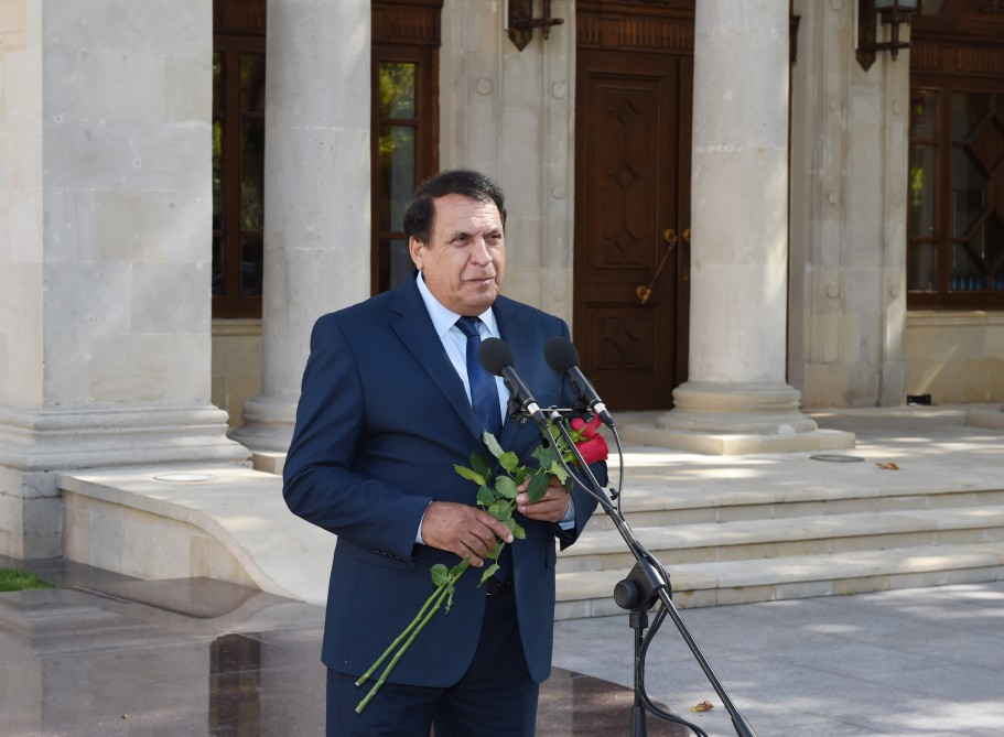Azərbaycanın birinci xanımı Mehriban Əliyeva və tədbirin iştirakçıları abidənin önünə gül dəstələri qoydular.