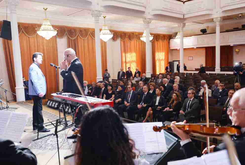 Daha sonra Prezident İlham Əliyev, xanımı Mehriban Əliyeva və mərasim iştirakçıları Rəşid Behbudov adına Dövlət Mahnı Teatrının estrada-simfonik orkestrinin müşayiəti ilə Əməkdar Artist Xəyyam Mustafazadə və müğənni Fəxri Kazım Nicatın ifasında dünya şöhrətli müğənnilər Rəşid Behbudovun və Müslüm Maqomayevin repertuarlarından mahnılar dinlədilər.