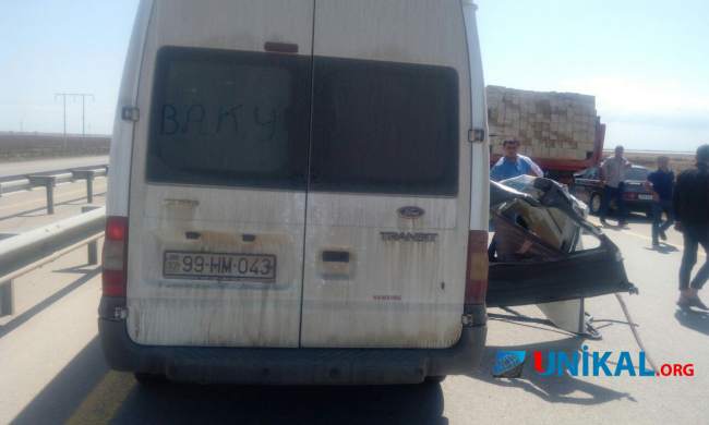 Unikal.org-un hadisə yerində olan əməkdaşının verdiyi məlumata görə, qəza yolun Ələt istiqamətində olan hissəsinə qeydə alınıb. Belə ki, içərisində sərnişinlər olan "Ford" markalı, 99-HM-043 dövlət nömrə nişanlı mikroavtobusla, daşla yüklü olan 12-BE-342 nömrə nişanlı "Kamaz" toqquşub.