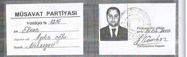 Partiya isə E. Mirzəyevin sənədinin saxta olduğunu açıqlayıb.