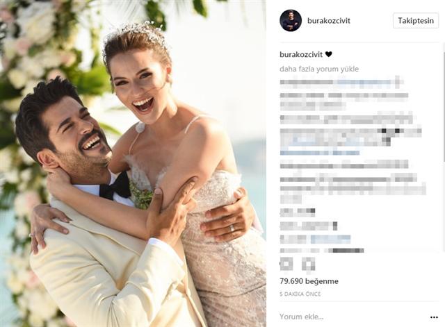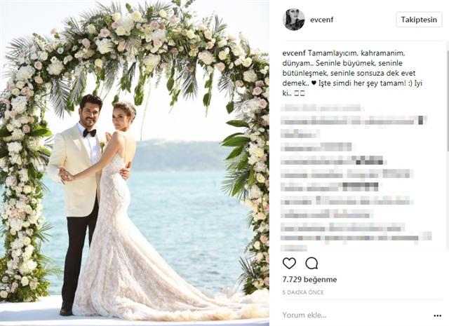 İki gün əvvəl toyları olan aktrisa Fahriye Evcen və aktyor Burak Özçivit bu gün İnstaqramda romantik paylaşımlar ediblər.