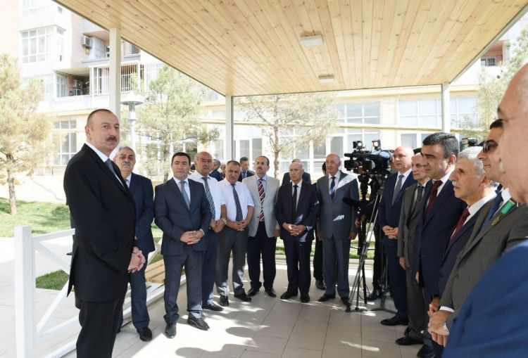 Parkla tanışlıqdan sonra Prezident İlham Əliyev Bakı Dövlət Universitetinin professor və müəllim heyəti üçün tikilən binanın və ətrafdakı evlərin sakinləri ilə görüşdü.