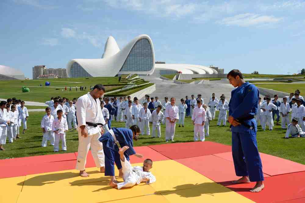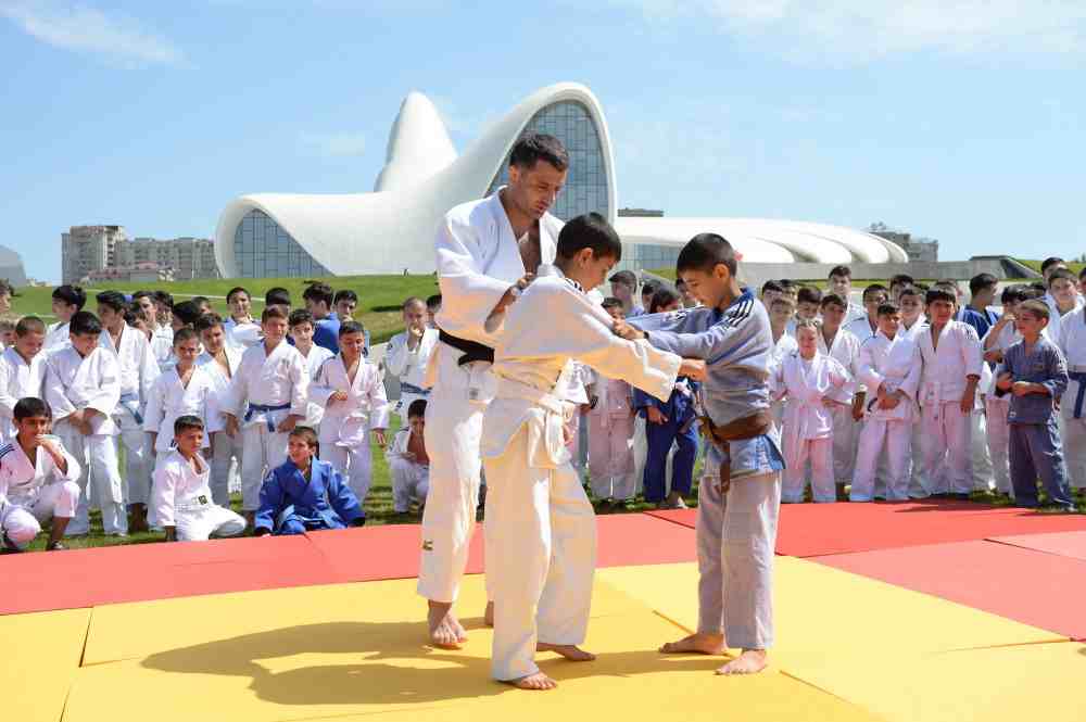 Bu həftəsonu Heydər Əliyev Mərkəzinin parkında cüdo üzrə dərs və uşaqlar üçün əyləncə təşkil olunub.