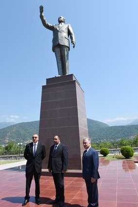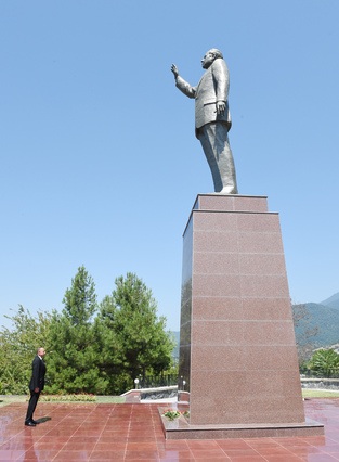 Unikal.org xəbər verir ki, dövlət başçısı əvvəlcə mədəniyyət və istirahət parkında Heydər Əliyevin abidəsini ziyarət edərək, önünə gül dəstəsi qoyub.